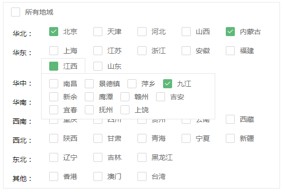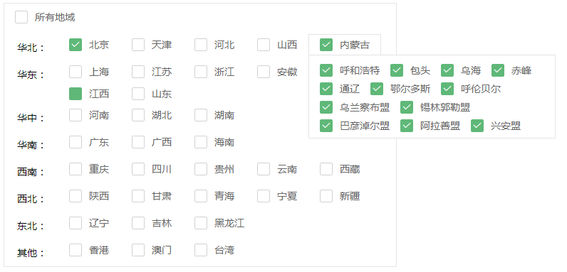 基于 layui 的省市多选解决方案(省市复选框组件)