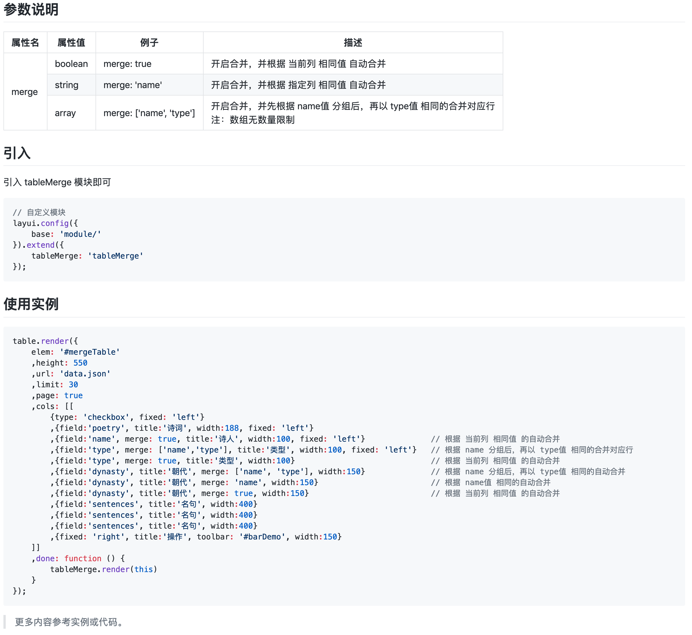 1. 根据列值自动合并 2. 指定列值(可以根据其他列)进行合并 3. 分组进行合并。